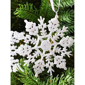 圣誕樹掛件圣誕櫥窗雪花吊飾10/12/15CM白色和銀色閃粉散裝雪花片