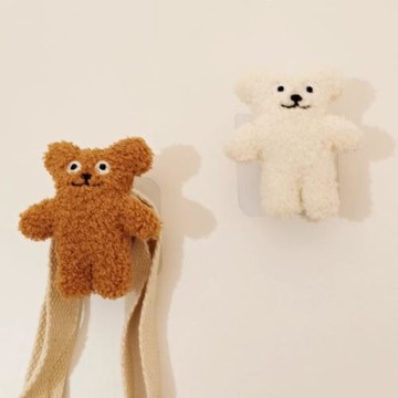 韓版ins風可愛小熊木質墻面裝飾掛鉤兒童房裝扮壁掛衣櫥柜門粘鉤