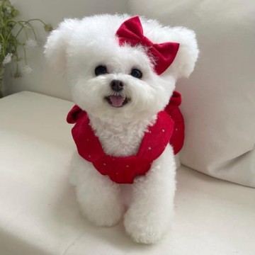 點我下載寵物衣服秋冬新款加絨紅色蝴蝶結連衣裙狗狗貓咪過年圣誕新年禮服