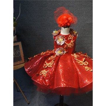 兒童禮服紅色新年禮服女童短款蓬蓬裙主持走秀元旦喜慶表演演出服