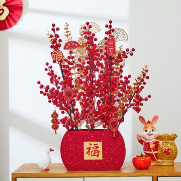 喬遷新居紅果發財果仿真花客廳擺設假花高檔餐桌花店鋪開業裝飾品