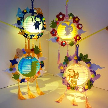 新款中秋兒童紙燈籠幼兒園diy手工材料包卡通手提發光小花燈掛飾
