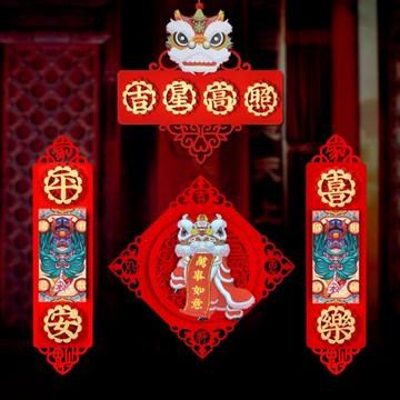 門神對聯套裝2025蛇年春節過年家用春聯立體福字醒獅創意鐘馗秦瓊