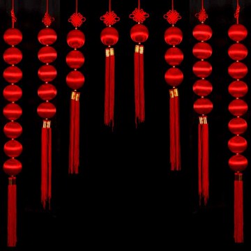喬遷戶外新年陽臺掛飾春節酒店大門口大紅燈籠室內裝飾元旦絲光球