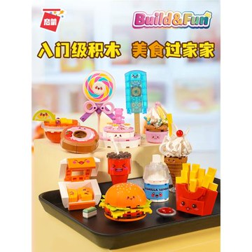 益智積木入門級系列漢堡禮物女孩零食男孩薯條簡單兒童拼裝玩具