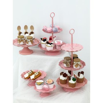 浪漫粉色蛋糕盤子婚慶道具 鐵藝蛋糕架甜品臺擺件 粉紅點心架托盤