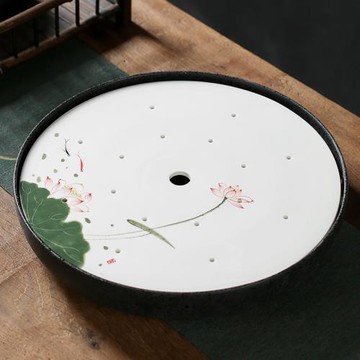 點我下載陶瓷家用圓形茶盤手繪托盤功夫茶具干泡臺泡茶儲水式茶托收納中式