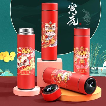 大容量智能保溫杯女高顏值304不銹鋼便攜學生兒童虎年春節禮品杯