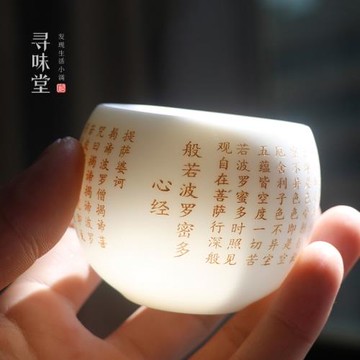 素燒羊脂玉瓷心經杯|沉雕描金百福杯高檔白瓷小茶杯品茗杯主人杯