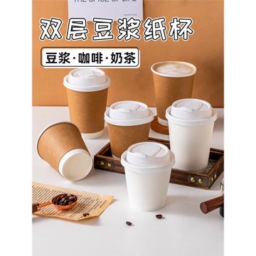一次性紙杯子牛卡雙層豆漿杯一次性打包杯帶蓋商用防燙外帶專用