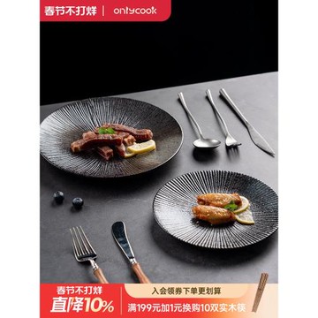 onlycook日式陶瓷牛排盤子刀叉餐盤家用黑色高級感西餐餐具意面盤
