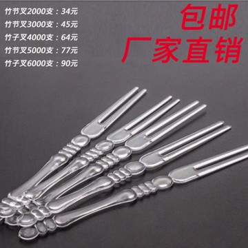 透明竹節水果兩節叉蛋糕叉 一次性水果針塑料水果簽 足數10.5cm
