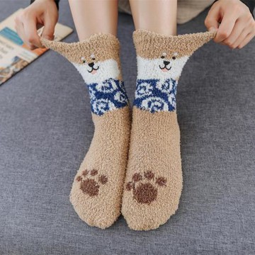 月子襪睡覺穿的毛絨襪子女冬睡覺地板襪產后卡通狗狗加厚珊瑚絨襪