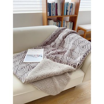 點我下載出口品質幾何灰咖北歐雙層毛毯加厚保暖冬季法蘭絨珊瑚絨午睡毯