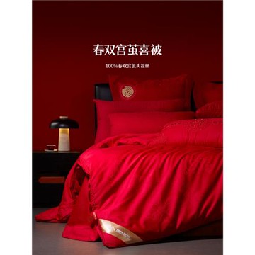 奢華重磅水洗真絲婚慶四件套紅色天絲中式結婚被套新婚嫁床上用品