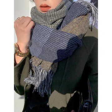 APCSHOP 奢享絨尖意新款推薦精益百搭軟糯散須保暖千鳥格羊絨圍巾