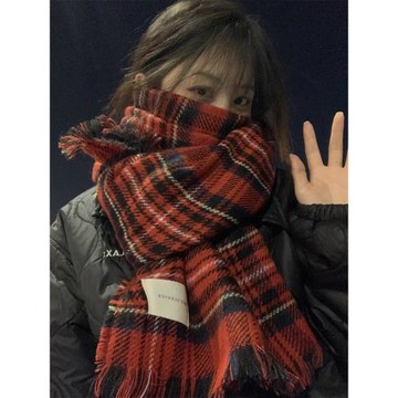 紅色格子圍巾女冬季2025新款高級感仿羊絨加厚披肩學生情侶圍脖