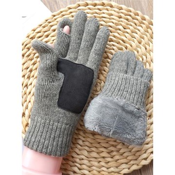 針織羊絨手套冬天女士基礎色加絨保暖開車騎車寫字學生漏指可觸屏