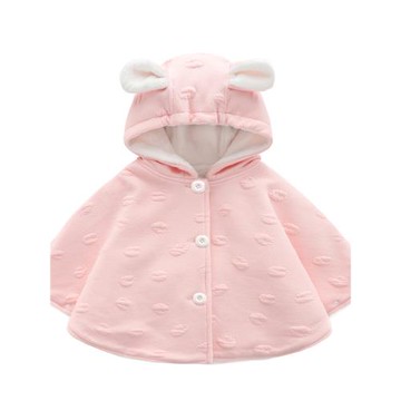 JoyNa - 保暖斗篷 長耳朵連帽造型 寶寶披風 棉布-粉長耳朵兔