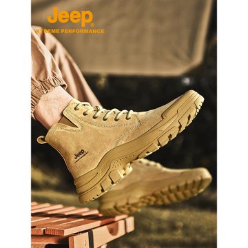 jeep男鞋馬丁靴男加絨冬季棉鞋潮流英倫沙漠短靴高幫保暖工裝靴子