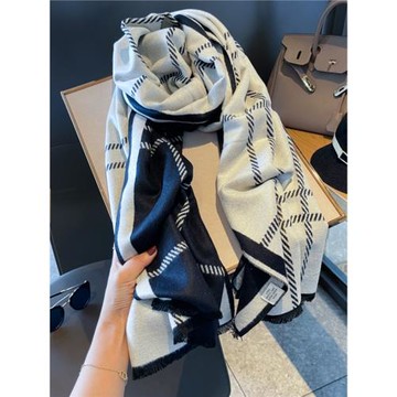 Miss Silas秋冬季披肩女士韓版時尚黑白雙面羊絨加厚保暖圍脖圍巾