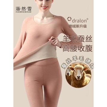 羊毛蠶絲保暖內衣女德絨打底衫秋衣秋褲套裝內穿無痕加絨發熱上衣
