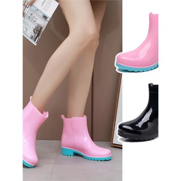 甜美短筒黑色粉色女馬丁靴雨鞋防滑耐磨洗車廚房女雨靴防水踩水鞋