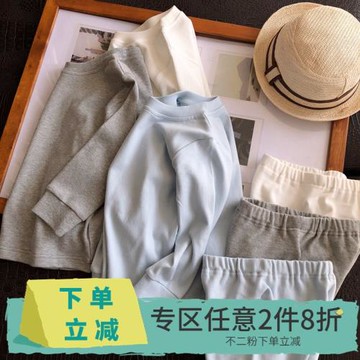 【2件8折】 wu印風系~男童家居服套裝秋冬款兒童純色保暖圓領內衣
