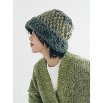 印計谷羽 粗針織毛線帽女冬天保暖百搭日系仿貂絨漁夫帽柔軟帽子