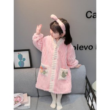 兒童睡袍珊瑚絨加厚加絨女童睡衣可愛秋冬珊瑚絨浴袍法蘭絨家居服