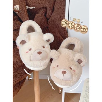 日系可愛少女心小熊毛絨鞋女冬季時尚情侶居家用防滑保暖棉拖鞋男