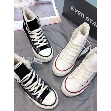 EVENSTAR星星圓標圖案高幫系帶加絨帆布鞋高腰板鞋大棉保暖男女鞋
