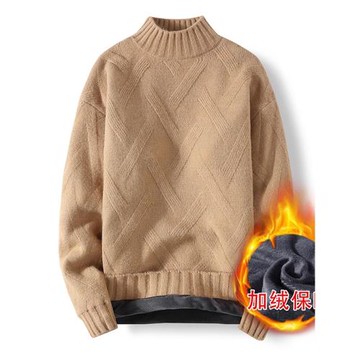 半高領加厚水貂絨毛衣男秋冬季2025新款青少年加絨上衣打底針織衫