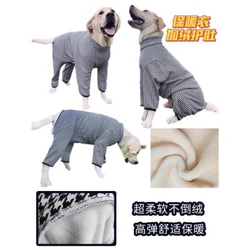 狗狗大型犬金毛包肚高領防掉毛全包裹千鳥格保暖加絨加厚四腳衣服