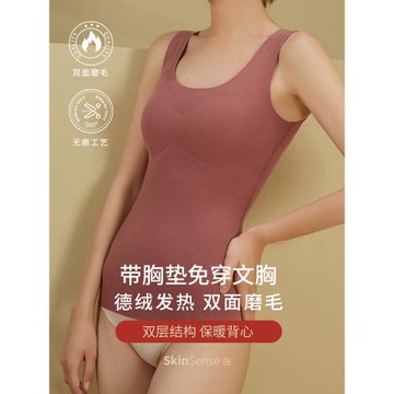 秋冬季保暖內衣女士單件德絨蓄熱無痕背心加絨帶胸墊打底內穿薄款