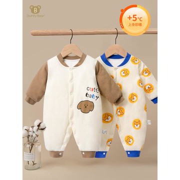 嬰兒連體衣秋冬夾棉哈衣寶寶新生兒衣服保暖外出加厚棉服冬裝