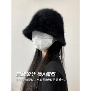 白色毛毛兔絨水桶帽女秋冬日系漁夫帽遮臉護耳保暖盆帽百搭顯臉小