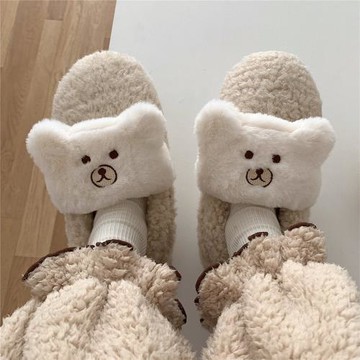 日系可愛少女心小熊毛絨鞋女冬季時尚情侶居家用防滑保暖棉拖鞋男