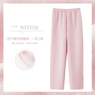 女士純棉夾層睡褲粉色可愛甜美秋冬季保暖寬松大碼長褲家居褲睡衣
