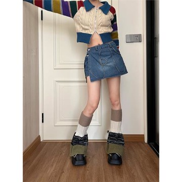 美式復古條紋針織襪套棕色辣妹闊腿喇叭腿套秋冬保暖個性拼色襪子