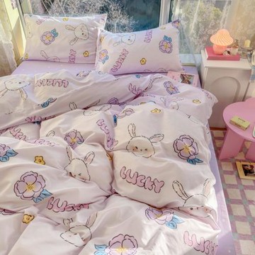 【少女心四件套】【熱款】日系可愛紫色小熊卡通四件套床單被套雙人床上用品學生宿舍三件套