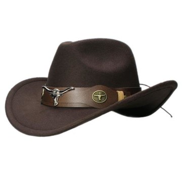 簡約咖啡銀扣皮帶休閑遮陽防曬保暖男女兒童毛呢西部牛仔帽春秋冬