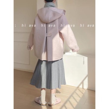 高級感小個子中長款雙面羊絨呢子大衣連帽毛呢斗篷外套女秋冬加厚