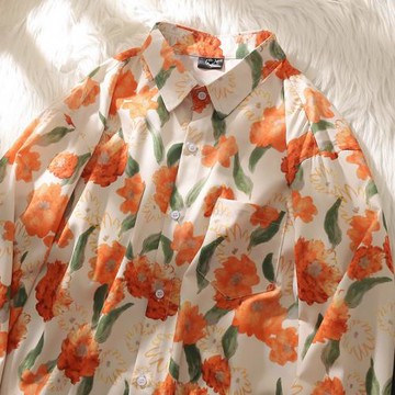 逃離地球歐美復古花卉滿印vintage襯衫女街頭潮流寬松bf風花襯衣