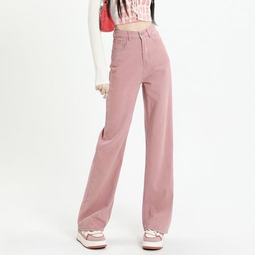 逃離地球臟粉色直筒牛仔褲女春夏辣妹高腰顯瘦垂感拖地窄版闊腿褲