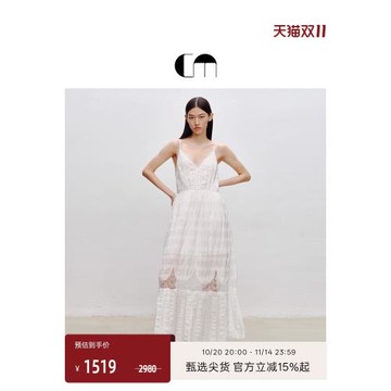 [張雪迎同款]COMME MOI呂燕設計師秋女裝V領蕾絲拼接無袖連衣裙