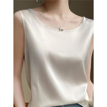 夏季真絲吊帶背心女寬松圓領桑蠶絲外穿大碼無袖緞面內搭打底上衣