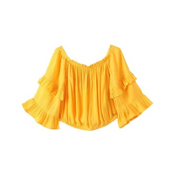 諾諾E站【GS】秋裝 甜美時尚寬松木耳邊褶皺一字肩蕾絲衫上衣長袖