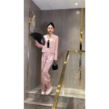 禪意新中式女裝套裝2026春季新款國風盤扣唐裝外套闊腿褲兩件套女