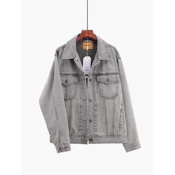 煙灰色牛仔外套女短款長袖2025年初春新款寬松夾克牛仔褂大碼潮